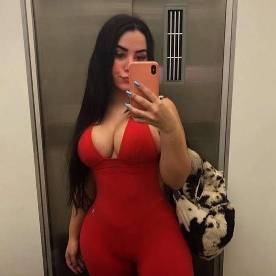 Eu VESTIDA COM UM MACACÃO VERMELHO TODO COLADO, (foto abaixo) cabelos soltos.