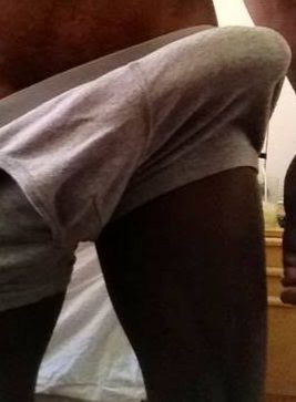QUANDO BAIXOU A BERMUDA SO DE CUECA COM A ROLA DURA, ELE PUXOU PRA FORA AQUELA ROLA PRETA GRANDE E GROSSA DEVIA TER UNS 26 CM PELO MENOS SEGURANDO A ROLA ME DISSE QUER CHUPAR ALGO MAIOR?